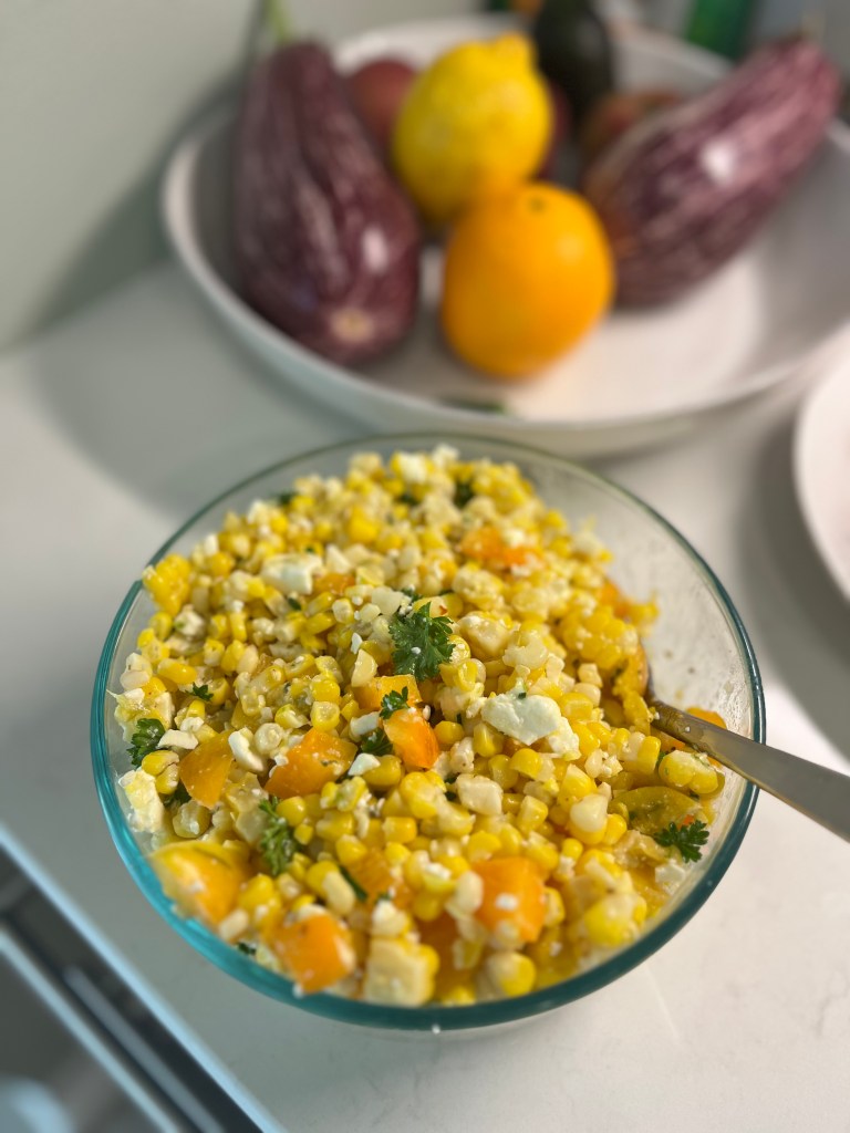 Summer is in full swing when sweet corn arrrives at the Madison Farmer’s Market! Pro tip: buy twice as much fresh corn than you think you need; cook at once and enjoy some for dinner. Then, skim the kernels off the remaining ears and freeze or save for later. This simple corn and basil salad is a great way to enjoy corn and use ingredients from your garden. Toss freshly cut kernels with cherry tomatoes, slivered basil, a drizzle of olive oil, and a squeeze of lemon. Add a pinch of salt and cracked black pepper to bring out the corn’s natural sweetness. No basil? No problem. Add parsley. More protein? Add tangy feta or creamy goat cheese. Serve chilled or at room temperature as a side dish or light lunch. It’s quick, fresh, and celebrates summer abundance.